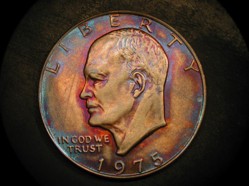 I know there is a toned coin thread already, but they are 99% silver or copper. I really like to see what people have for modern clad coinage. Clad coins are not as prone to react to the environment like the silver ones. But it definetely happens under the proper circumstances.
