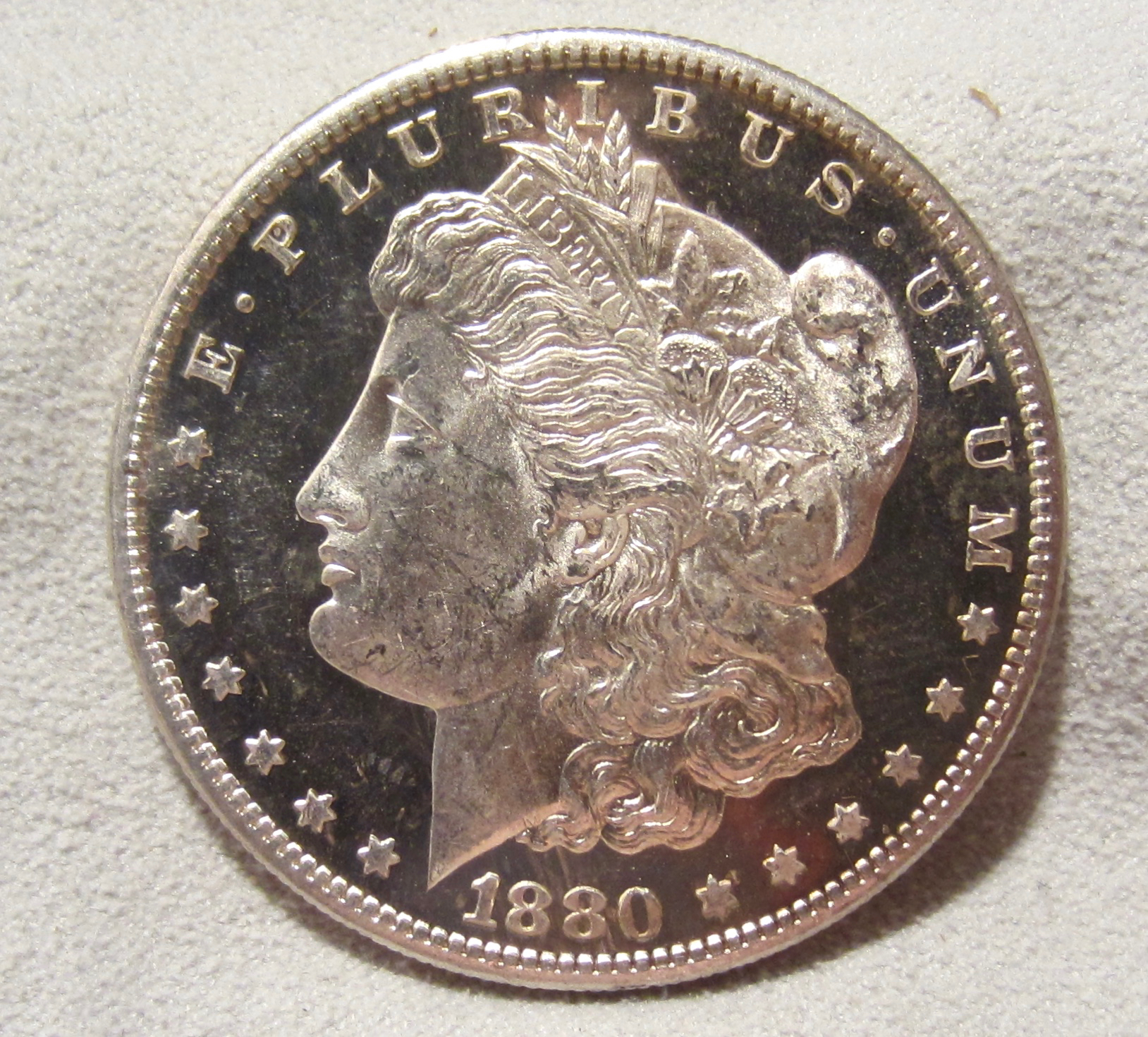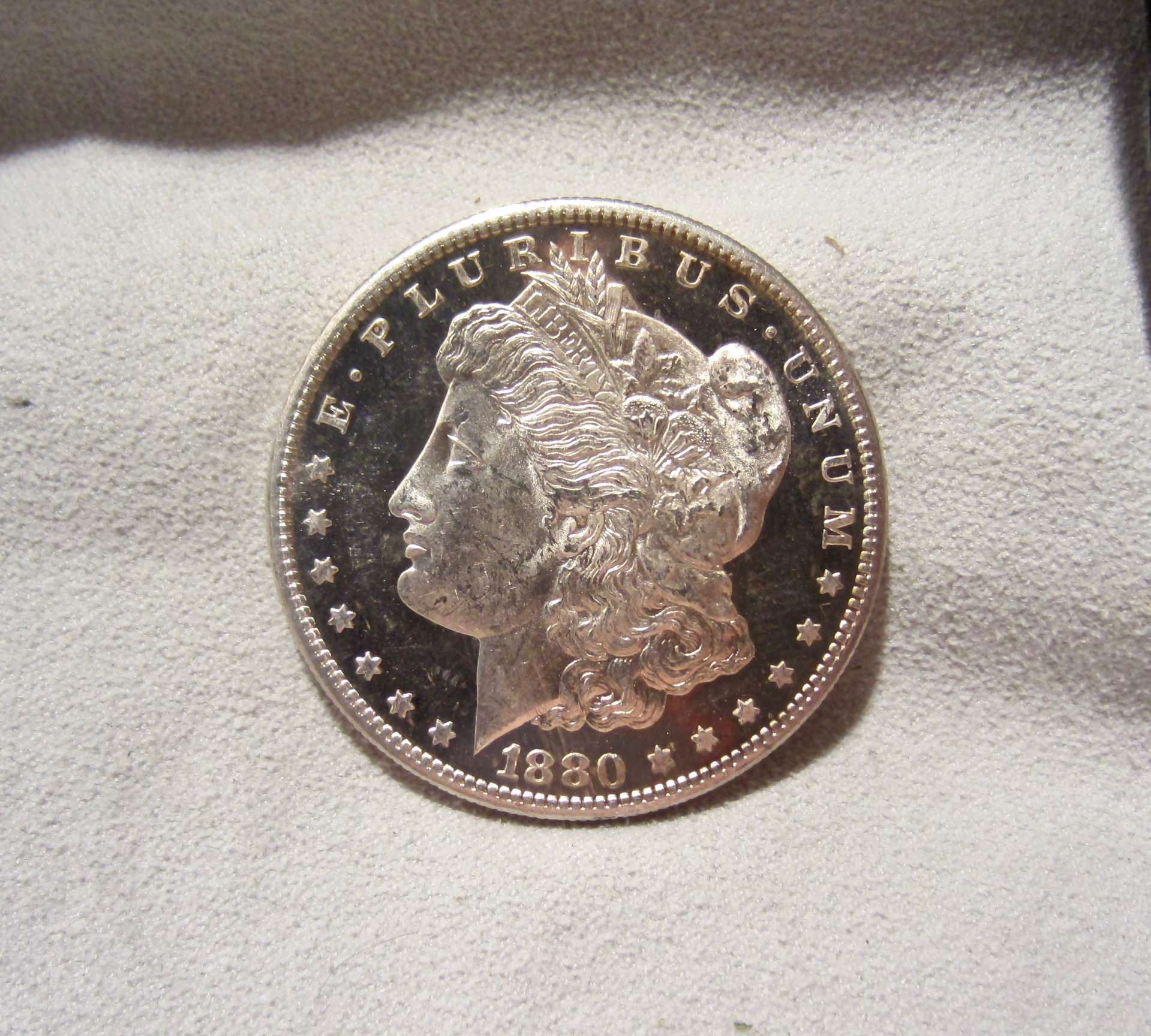 Another raw dimple! 1880 S/S “UDM” specimen. Though one of the most common DPL dates, price was great and eye appeal even better. I could shave in those mirrors! :headphone::headphone::headphone: