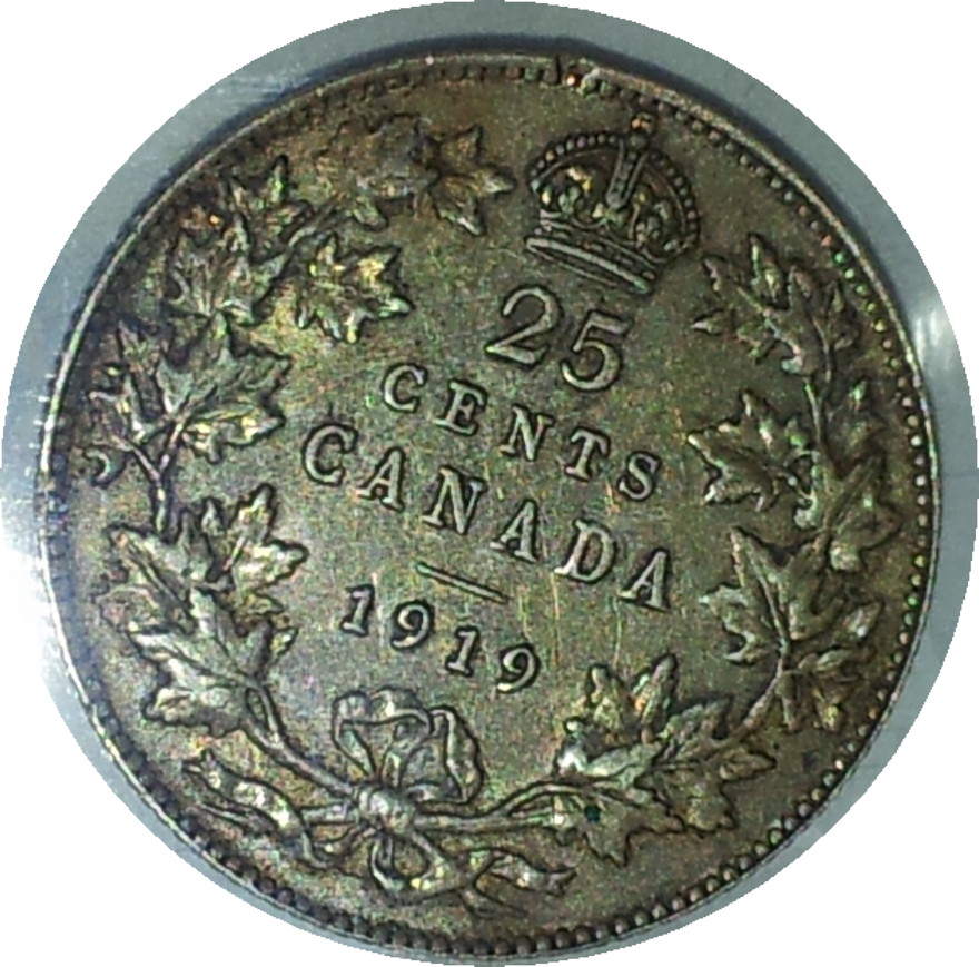 1919 CAN 25 Cent EF45 Rev.JPG 1919 CAN 25 Cent EF45 Obv.JPG