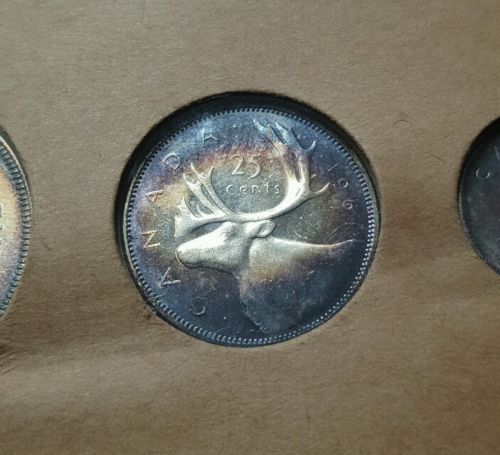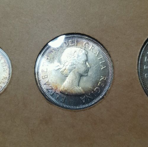 from the same seller and set from the above coin. toned 1961 Canada 50 cents. yes I already have this year, but I had to get this 1 too. sellers pics... I love the toning. I can't wait to get it in my hands. the fact that it's also has my birth year 1961 on it....had nothing to do with it. lol