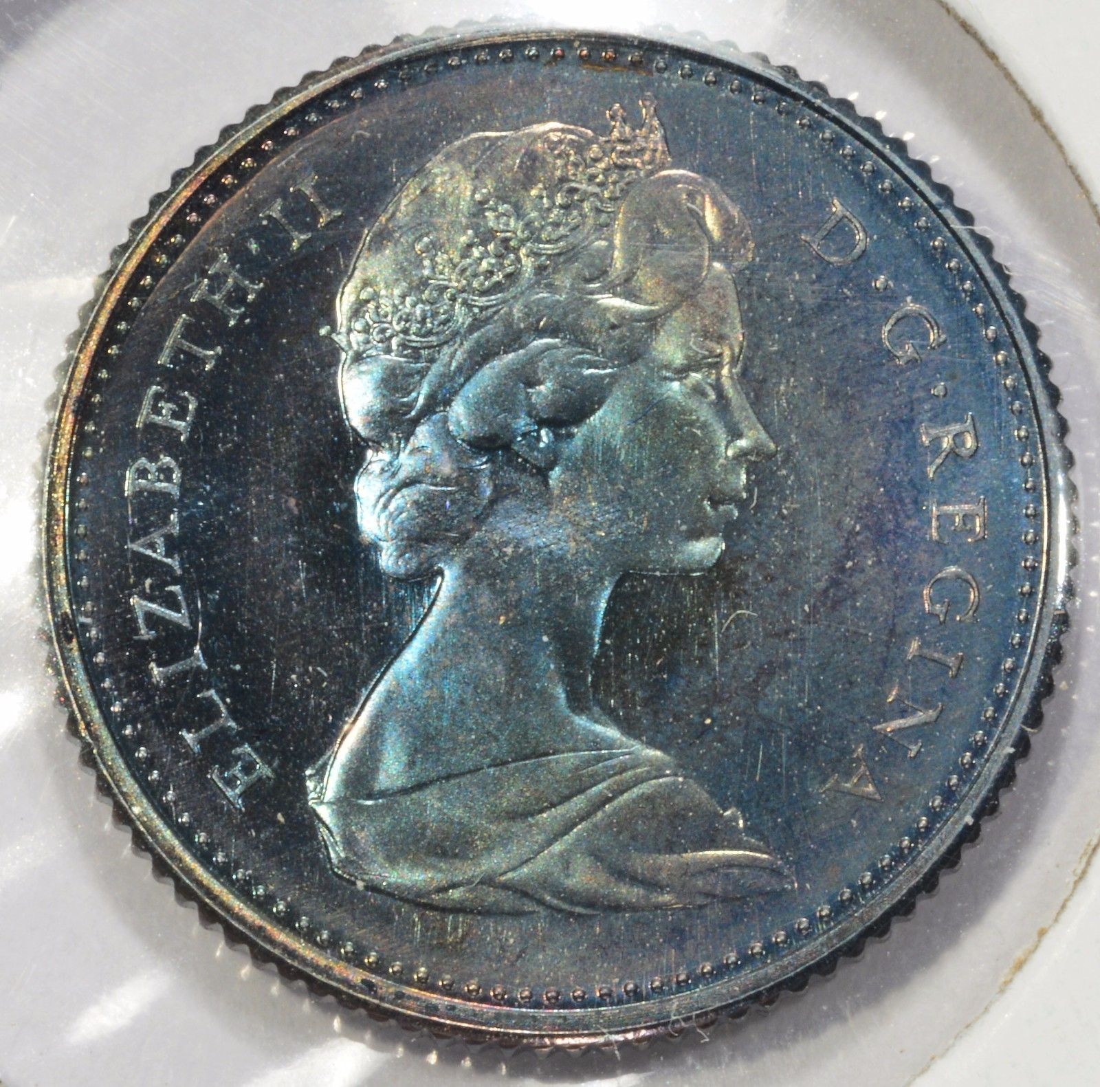 PCGS MS64 1965 rainbow toned 25 cents. sellers pics...