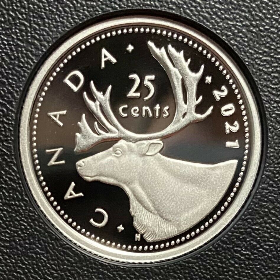 A silver 2021 proof 25 cents/caribou quarter. I like these... I needed a cheap coin fix for now... sellers pics...from a proof set.