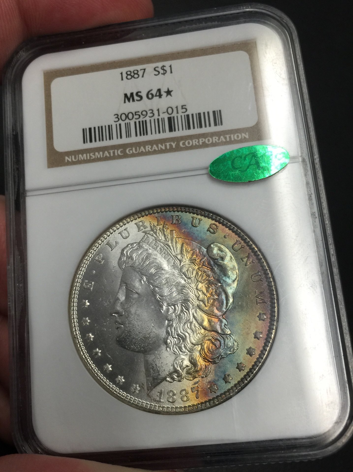 after reading a couple threads on here over the past couple months discussing NGC *star and plus coins I jumped on eBay and found this baby with the green bean already on. iPhone pics of coin in hand. $150 shipped...probably I paid too much but I'm happy with her. This is my first crescent toner also. So let's see some NGC *star coin's...post them if you got them