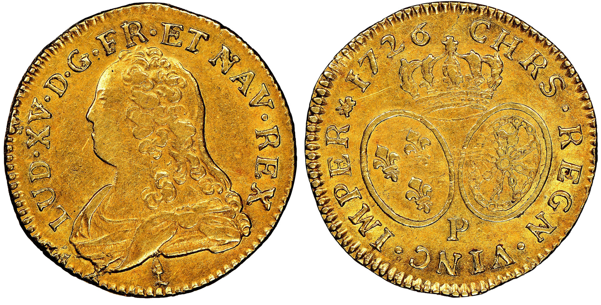 Louis XV gold Louis d'Or 1726-P XF40 NGC, Dijon mint, KM489.16, Fr-461, Jones-2305. Includes detailed collector and Auction tags.