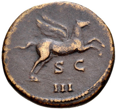 Hadrian Æ Dupondius Rome mint AD 117-138 Struck AD 125-128 Diameter: 26 mm Weight: 11.24 grams Obverse: Radiate bust right, slight drapery Reverse: Pegasus right Other: 6h ... RIC II 758 … Near VF, greenish-brown patina. From the Robert O. Ebert Collection CNG Auction 298, Lot #187