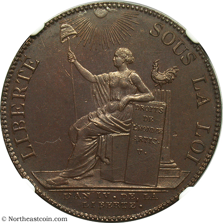 The SOHO mint also produced a large number of tokens and a variety of medals for Monneron Freres, a mercantile firm in France. These are the 2 sols and 5 sol pieces along with two medals intended for a medallic series that never was produced due to the bankruptcy of the Monnerons.