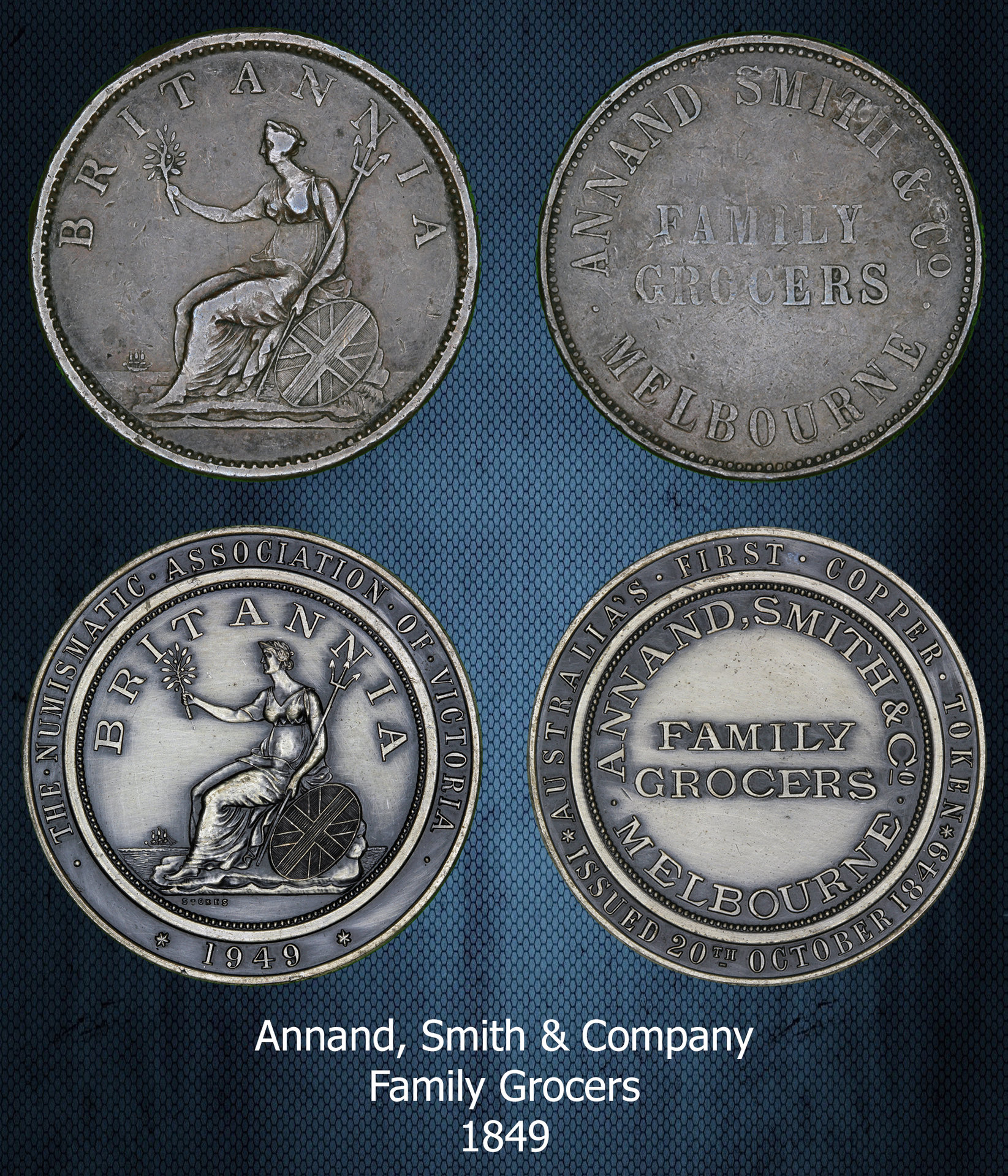 The Soho Mint closed in 1850. The last token minted was the Annand, Smith and Co. Family Grocers token dated 1849. The dies were sold to the Heaton Mint with the minting equipment. Heaton minted the second batch of Annand, Smith tokens. https://collections.museumvictoria.com.au/articles/1832