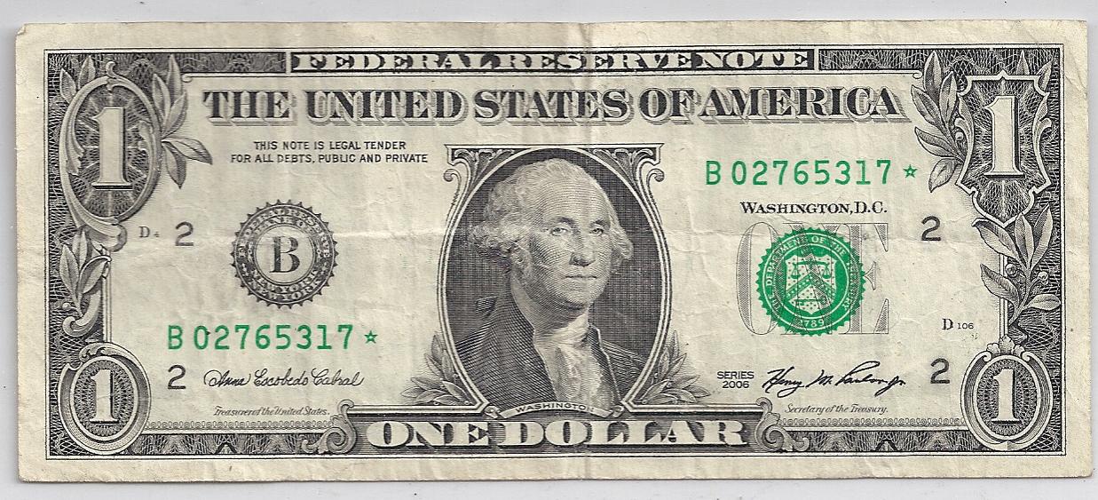 I've found many, many more stars than listed here (my collection contains more non stars, than stars) but these are the ones that are currently in my collection, that I can think of off the top of my head: $20: Series 1990, D* (Cleveland) $1: Series 2006, Two G*'s (Chicago, one w/3 digit serial), one B* (NY from 640K run). Series 2009, 1 B* (NY, from run 1 of this series of stars). These are all that I can remember at the moment, as I'm at work right now, and don't have the collection with me. I've not included any serial number info because I honestly can't remember them off the top of my head, but can/will post pics later, if anybody would like me to. ---No longer in my possession, or notes not found yet--- I'm trying to recall any stars that I used to have, but have since either spent, or sold. I've come across so many $1 stars, that I don't remember anything about any of the ones that have since left my hands. I've not found any $2 stars yet. For $5's, I did find a series 2003 DL*, but it was ragged, so I spent it. I also found a 2006 colorized star once, but don't remember anything about it, other than giving it as a gift to my cousins son. $10's: the only $10 star I've found was a series 2004A GL*, but spent that. It was from a 1.9m note run, I think, and may have been in Good condition, at best. $20's: Within the last two months I've found a 2004 $20 EC*, but don't recall any specifics on it, and also a 2004A GE*, but had to let that one go too. $50's: None yet $100's: I've only found one $100 star. It was a 2003A FB*, from run 1 (160K note run) and was in fantastic condition. However, I choose not to keep $100's, due to the high face value, so I sold it to a friend, and fellow enthusiast for face value. I still get to visit with it, from time to time.