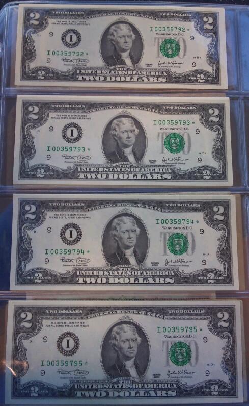 my 1976 Series Uncut sheet of 4 Two US Dollar- CLEVELAND DISTRICT Fancy Number as D 01119111* A Repeater?