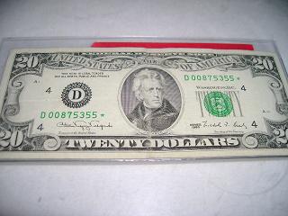 It was an ATM find, actually. I withdrew some cash this past summer, at a drive thru ATM, and after the bills popped out, I threw them on my passenger seat, while I got my ATM card back from the machine, and put it back in my wallet. Well, when I tossed the bills, they kind of fanned out on the seat, and I saw the edge of that 1990 sticking out amongst the others. I was quite surprised to not only find a small face $20 from an ATM, but a star note, no less. It was one of those finds that just makes your day. I was on cloud nine, for quite a while, afterwards.