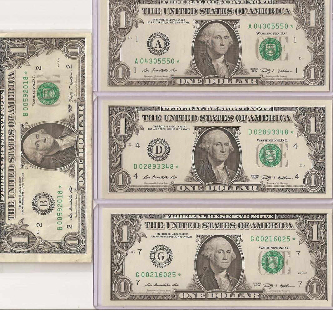 Is a new star note collector someone who has been obbssessvily buying/strap searching it non-stop daily for 3 years? ;P. If so, I am deffinately a new star note collector. I guess it would be new for someone who has been collecting long enough to have a 1969B uncirculated note from circulation lol. Oh wait a minute, I now realize that you were speaking of yourself being new, haha. Anyways; they are all keepers, so long as you can afford to do so. I especially appreciate your 2009 Boston $1's stars. I only have one example from the NY district, more common, as I mentioned in my original post. Your Boston '09 are all from 640k runs. Nice! Keep doing what you are doing; it will pay off! Plus for me, I love to walk down to the bank and get as many $1 straps as can fit in my pocket and look through them.