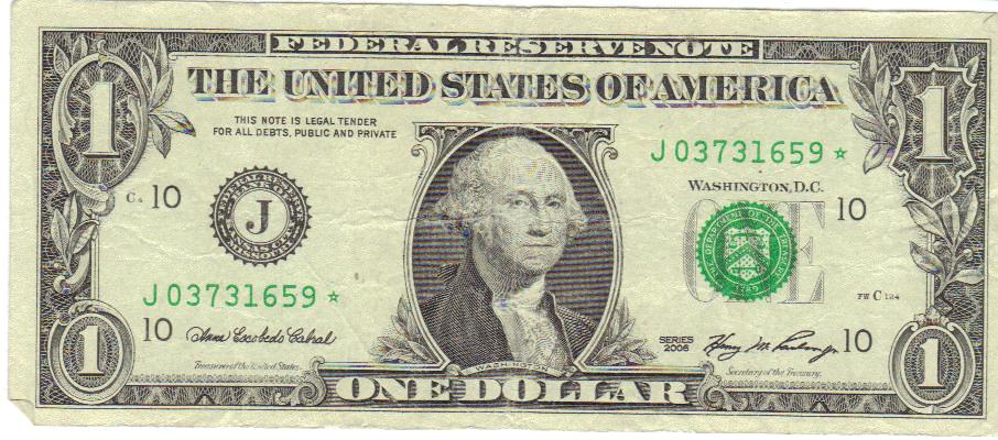 Been having second thoughts about an '06 NY $1 star, (from run 4, 640K run) I recently found. Serial B 10161336 *. I'm conflicted about this note, as far as keeping it, because it is a short run, however it is very heavily circulated, and one of the corners is torn off. :headbang: It's only a buck, though, so keeping it isn't an issue. It's just seen better days, is all. I'll post a pic later, if anybody is interested.