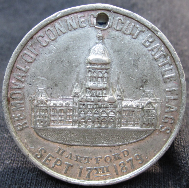 Here are some more tokens & medals gleaned from the bargain box. These were all found at the Naugatuck CT coin show a couple weeks ago. Connecticut USA Bicentennial Medal 1976 Removal of the Connecticut Battle Flags Sept 17, 1879