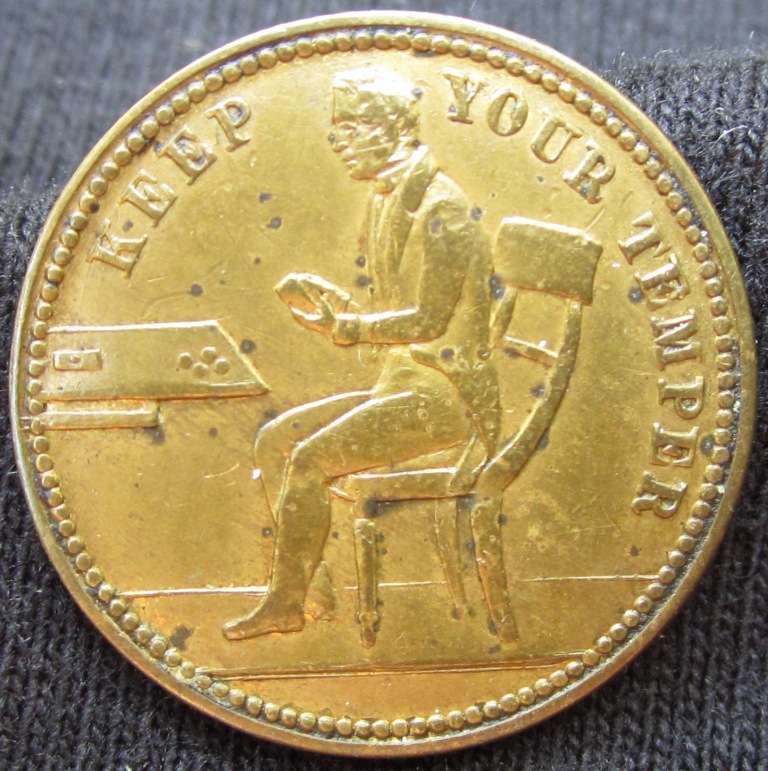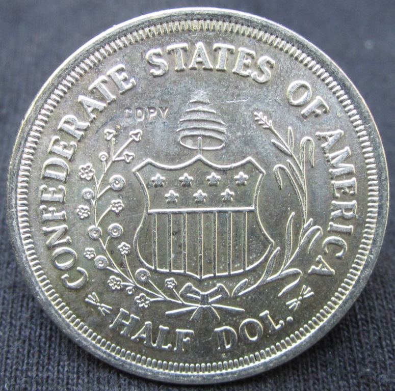 Pretty Vickie Gaming Jetton Keep Your Temper 1861 Confederate Half Dollar Reverse is stamped "COnfederate PaY"