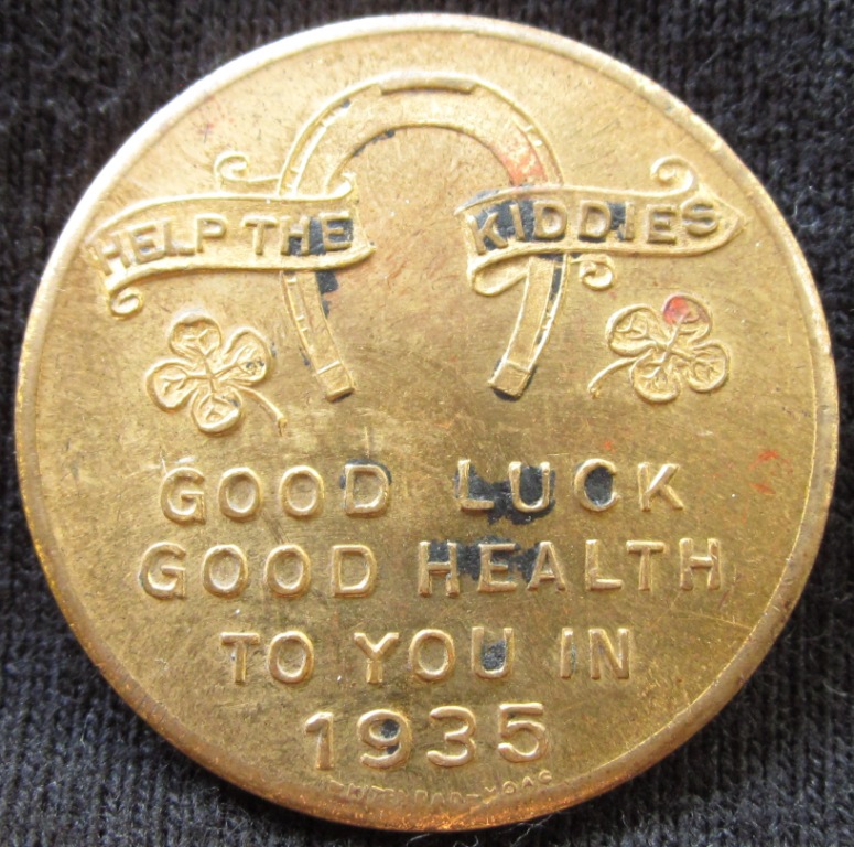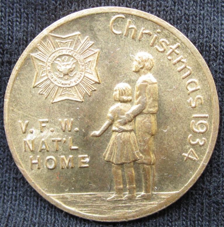 1934 V.F.W. Christmas Medal Good luck in 1935 Edward's Street School Lapel Pin New Haven, CT 1924 Honolulu Transit Token