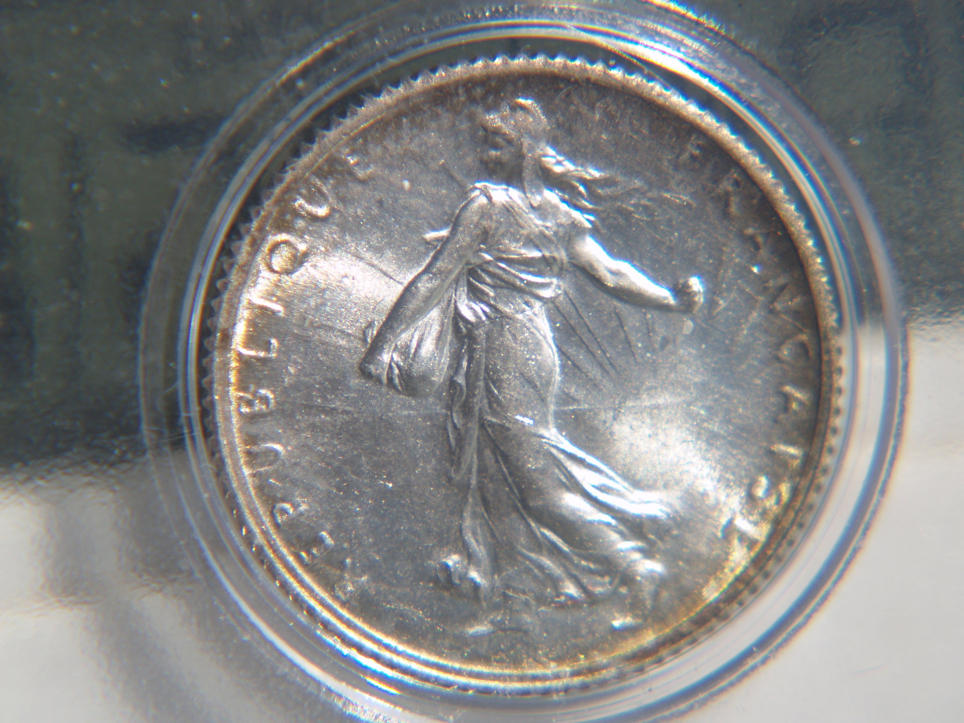This is a new Belgium coin and it's just stating to get that golden hue on the reverse side. On the face is a wrinkle in the plastic no on the coin.
