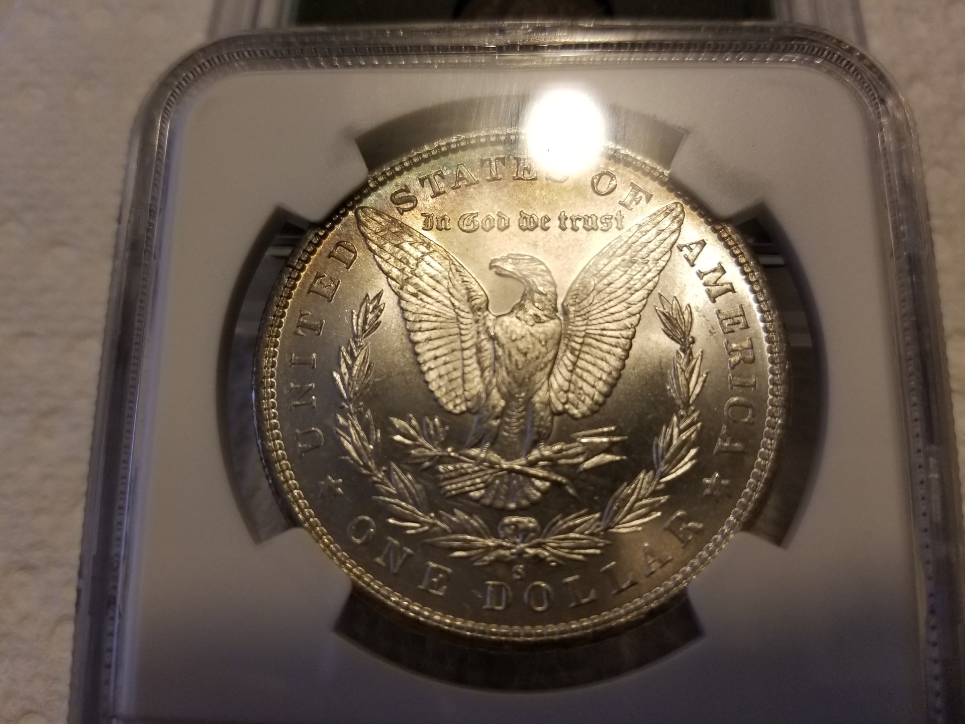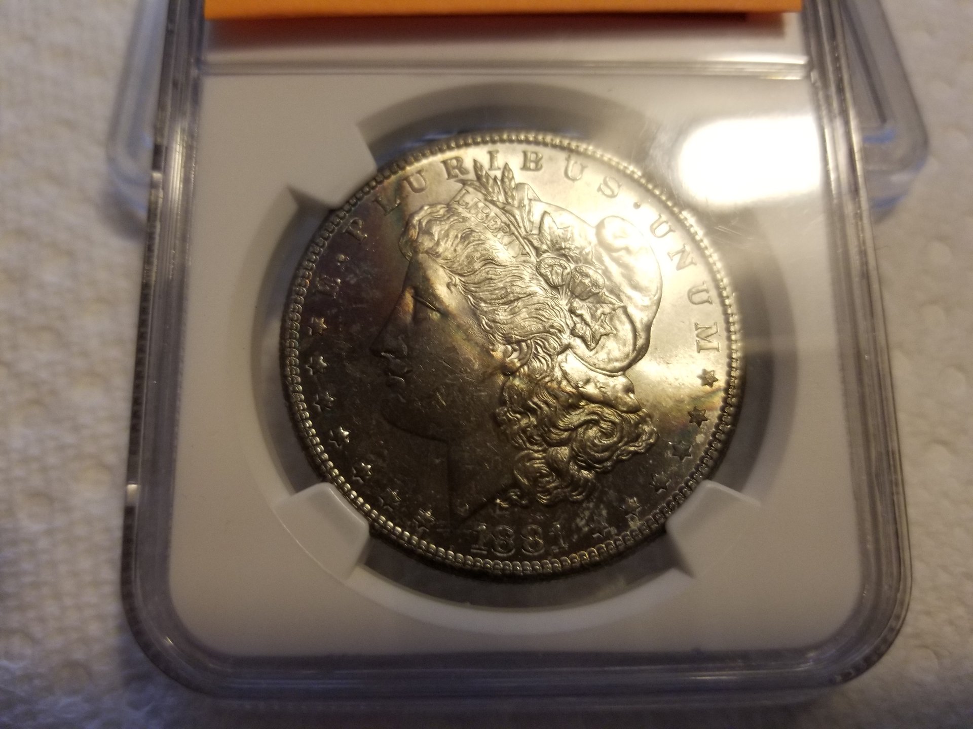 Another cool find today hard to image in hand a silver grey crescent with a burst of rainbow at each point of the crescent....typical hammered 81 s with just about a spotless reverse....eagles feathers just pop with sharpness ! Oh and yes under the thread limit.