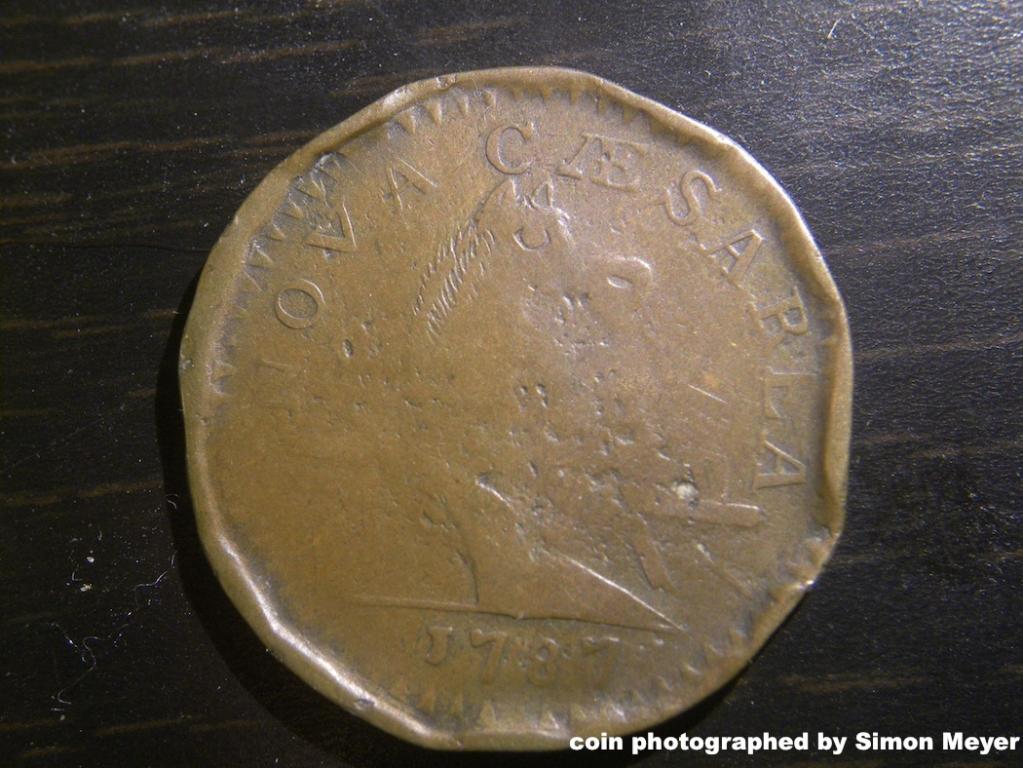 Hi folks. First off, apologies if a thread like this has already been created. I just passed 1,000 posts and I thought it would be fun to start a thread about old US coins. I mean REALLY old. Like early 1800s and older. So this is a thread for anyone that owns US Colonial coins. I find them completely fascinating. I'll start first. This is a 1787 Nova Caesarea (New Jersey) colonial coin that I bought off ebay. What I find especially interesting is that the coin was likely minted before New Jersey became a state (it gained statehood in December of 1787). It is probably VG-F details due to the damage/pitting (rims appear worse in the pictures than they actually are), although that doesn't bother me much seeing as how has survived in such great shape for 226 years. I encourage people to post their Colonials as well, and thanks CT for helping me get to 1,000 posts! Simon
