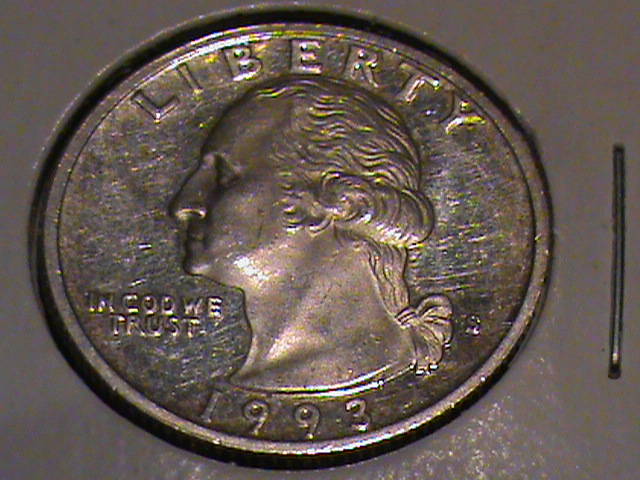 This 1993-s 90 % silver Proof Quarter i got for a great deal at 4 $ when silver was in low 30's It has really strong hairlines, but i still like it.