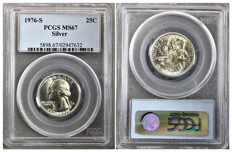 this one is part of a triple of the uncirculated silver issue -- Washington bicentennial quarter, Kennedy bicentennial half, and Eisenhower bicentennial dollar, all MS67.