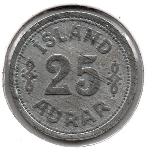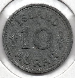Iceland WWII During the German occupation of Denmark, contact between the countries was disrupted. Initially, the Kingdom of Iceland declared itself to be neutral, and limited visits of belligerent warships and imposed a ban on belligerent aircraft within Icelandic territory. Following the invasion of Denmark on 9 April 1940 Iceland opened a legation in New York City. On 7 July 1941, the defence of Iceland was transferred from Britain to the (still officially neutral) United States. Iceland cooperated with the British and then the Americans, but officially remained neutral throughout World War II. On 17 June 1944, Iceland dissolved its union with Denmark and the Danish monarchy and declared itself a republic. Iceland - 10 Aurar - 1942 - KM #1a Iceland - 25 Aurar - 1942 - KM #2a