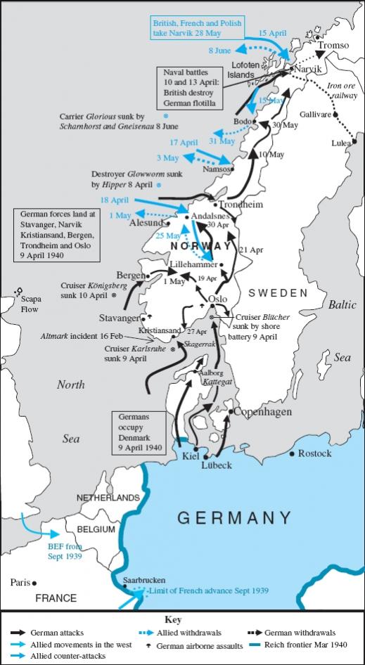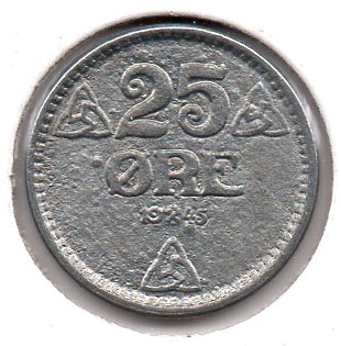 Norway WWII Norway was occupied by Germany from 1940 to 1945. Much was destroyed during the war. Buildings, factories and entire towns were bombed and burnt to the ground. Most goods were in short supply and many people experienced a difficult time. After 1945, the reconstruction of the country began. This was a very busy period. Both production and exports increased, and the merchant fleet was built up again. Norway - 10 Ore - 1942 - KM #389 Norway - 25 Ore - 1945 - KM #395