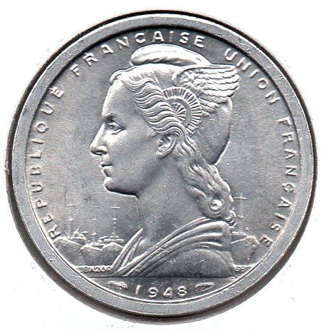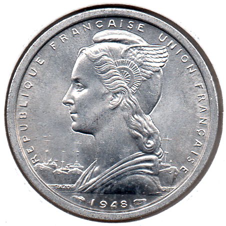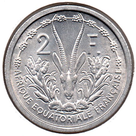 French Equatorial Africa - 2 Francs - 1948 - Obv.jpg French Equatorial Africa - 2 Francs - 1948 - Rev.jpg