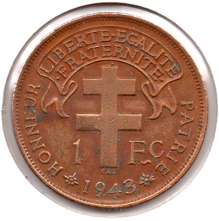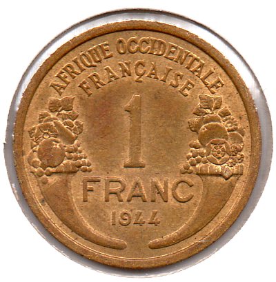 French West Africa - 1 Franc - 1944 - Obv.jpg French West Africa - 1 Franc - 1944 - Rev.jpg