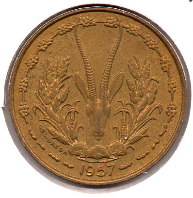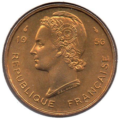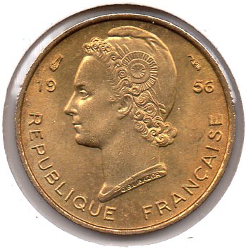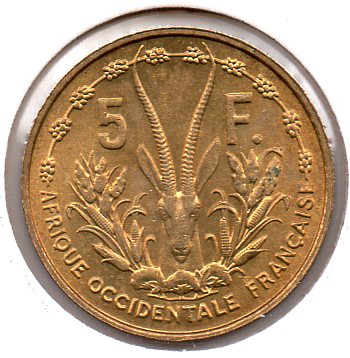 French West Africa - 5 Francs - 1956 - Obv.jpg French West Africa - 5 Francs - 1956 - Rev.jpg