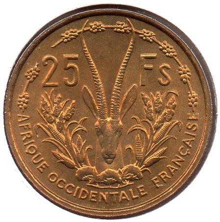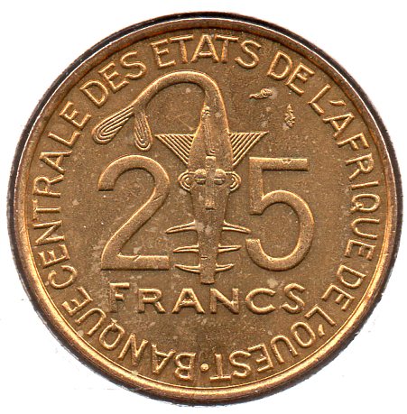 West African States - 25 Francs - 1975 - Obv.jpg West African States - 25 Francs - 1975 - Rev.jpg