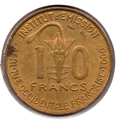 Frent West Africa & Togo - 10 Francs - 1957 - Obv.jpg Frent West Africa & Togo - 10 Francs - 1957 - Rev.jpg