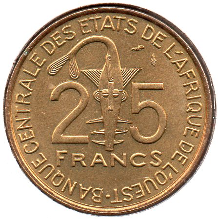 West African States - 25 Francs - 1980 - Obv.jpg West African States - 25 Francs - 1980 - Rev.jpg