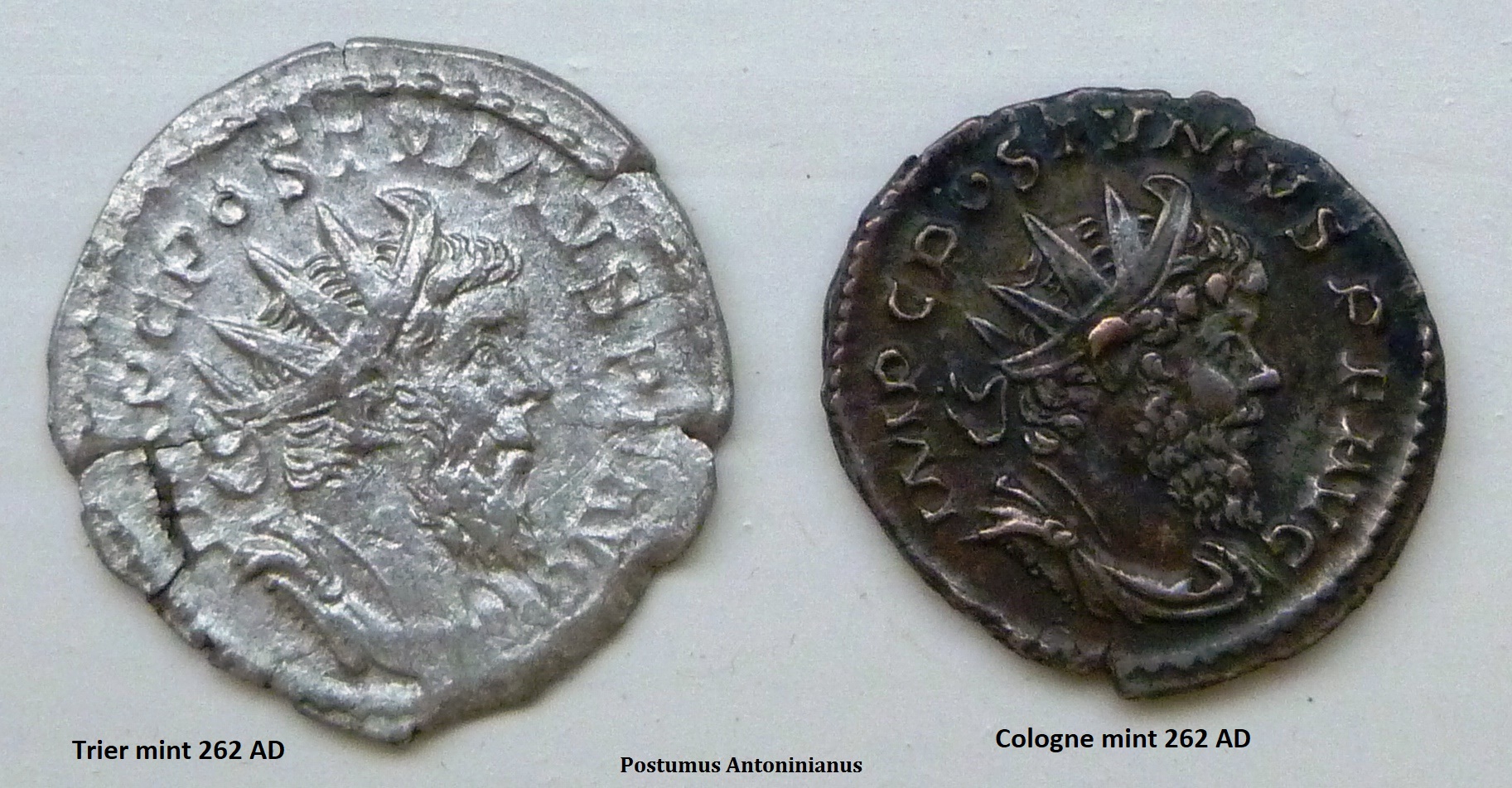 Trier indeed made better specimens than Cologne. However, you put under the coin from Cologne that it was minted in 262. According to The Study that I read, this is not possible. Postumus would not have opened a mint in Cologne until 268. If you find it interesting then I refer you to Jerome Mairat "Coinage Of the Gallic Empire" (2014) This is available for free. He gives an extensive representation of the possible places where Postumus and the other Gallic emperors minted their coins.