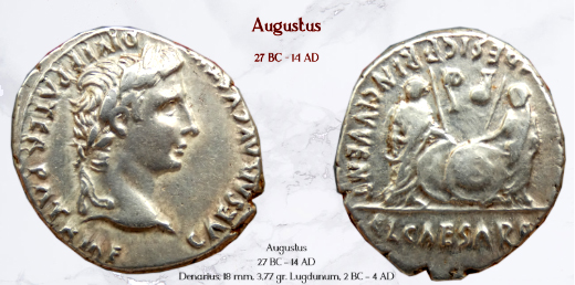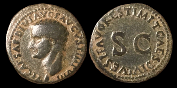 Inscription: TI CAESAR DIVI AVG F AVGVSTVS IMP VIII