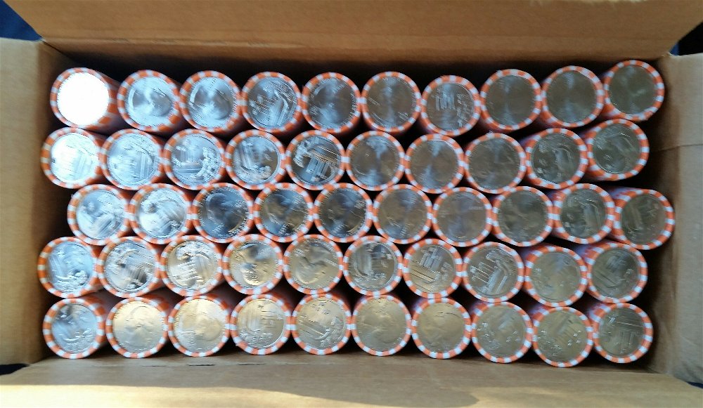 Another might run the pallet's of quarters and make boxes and palletized then and rack them for future use and they are sitting there on the terminal shelf never seeing circulation because they keep re-rolling returned circulated coin and it meets their demand and the new stuff is stored if they ever actually need it and easily inventories and free of foreign coins.