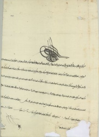 There is a date below the tughra with an X scratched across it. Not clear but looks like 1324 (= 1906/7).
