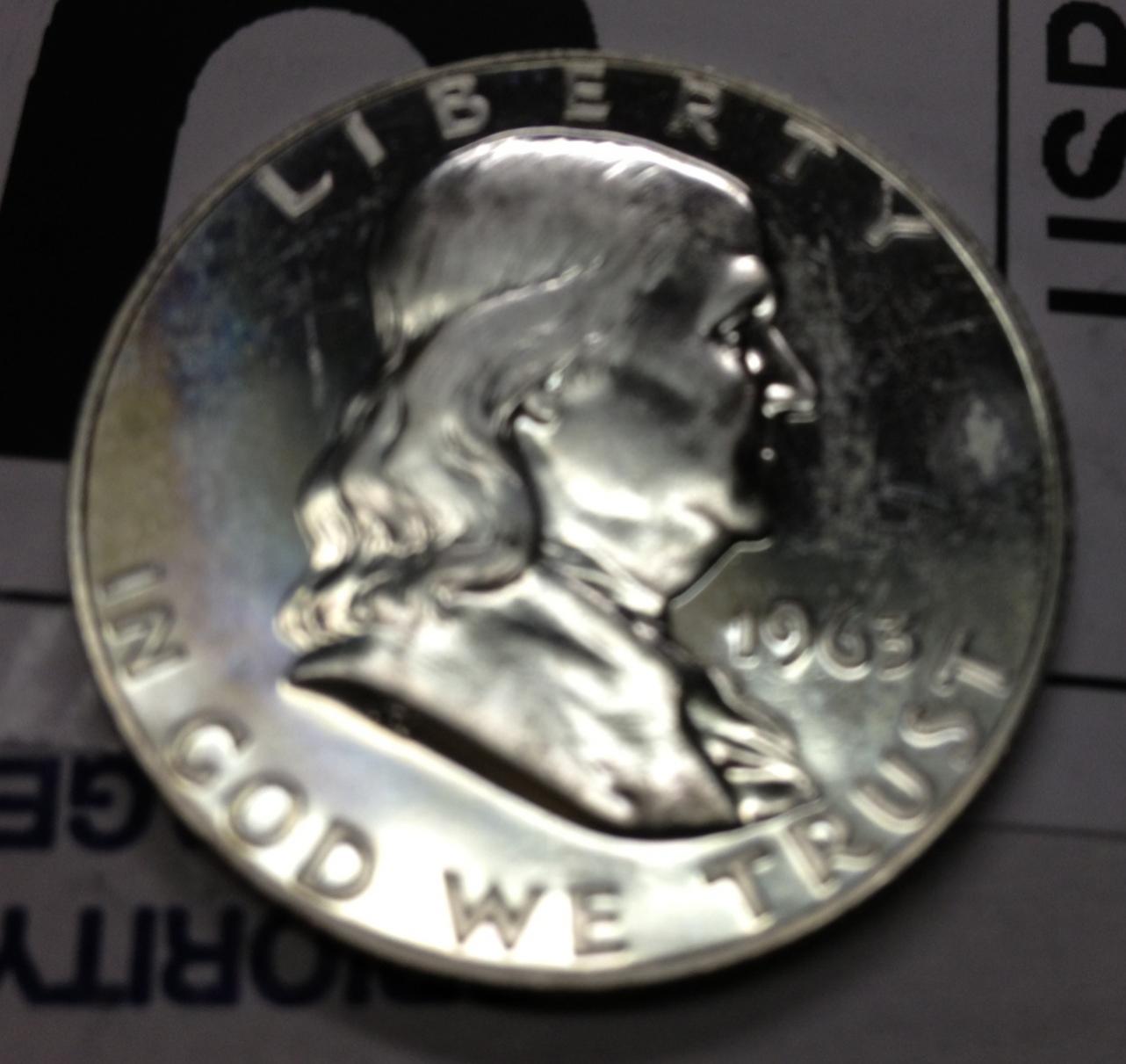i just bought $5.00 assorted silver coins from mintproducts.com . i received a few some Franklins, one appears mirror like (over whole coin-whole coin has sa,e finish) and coin 2 appears to be prooflike. Pictures 3/4 are of mirror like coin(do you think it is proof or cleaned...i think its too much reflective/mirror like to be an unc...pics 1/2 are what i believe to be proof. what do you guys think, any thoughts appreciated. are they jusr scrap silver to store in rolls or are they worth holding on to?