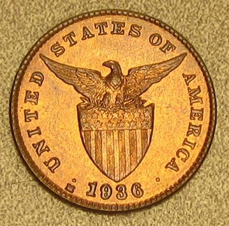 The second coin is a centavo from the Philippines. This one is a little older and a little redder than the ones from the 1940’s that I normally see. This one is from 1936 and it includes the earlier reverse shield & eagle design.