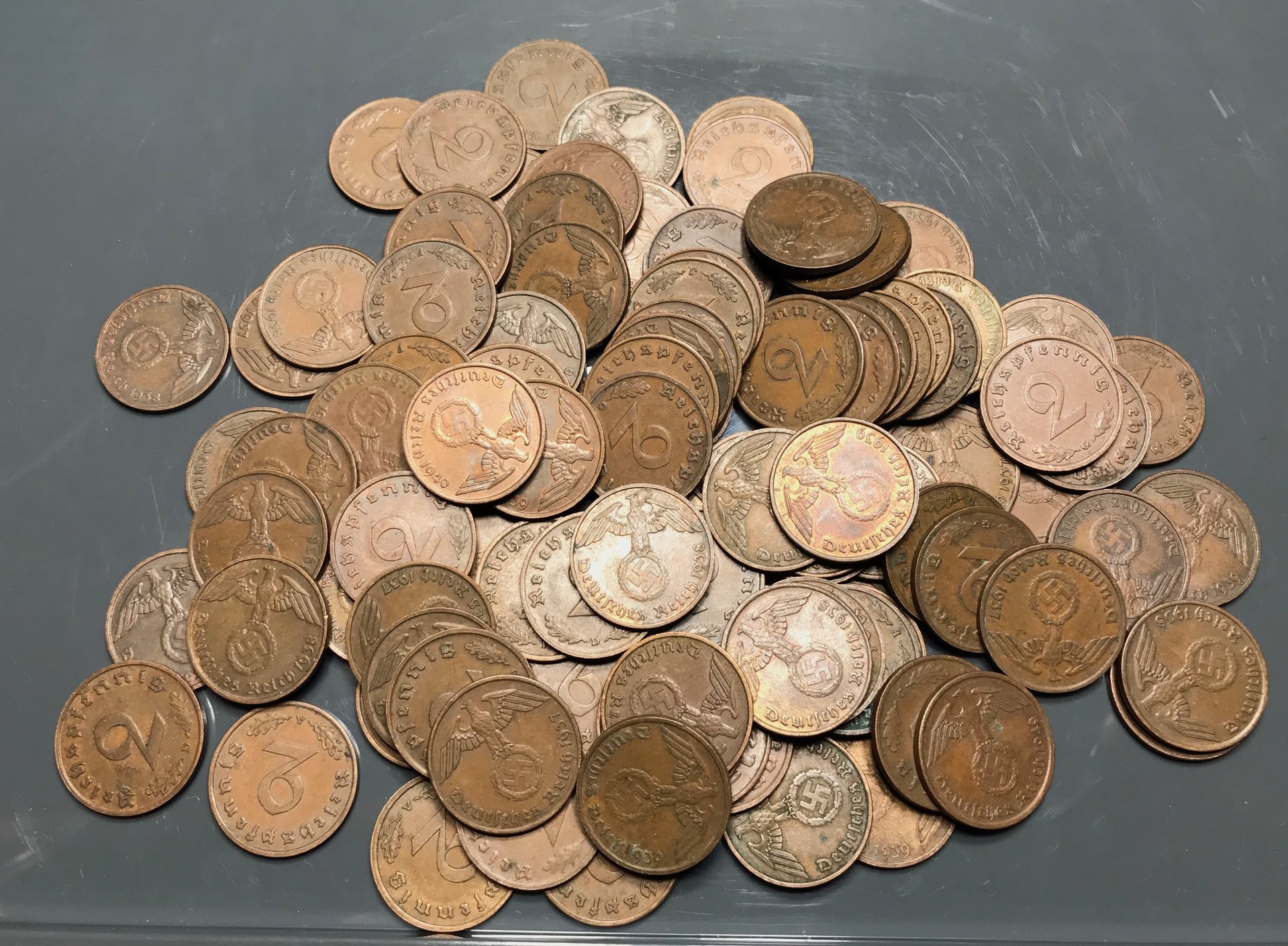 Good evening and happy belated Christmas, everyone! I'd like to offer a few things for sale here if I may. Shipping charges are included in asking price. 1) 1999 and 2001 1/10 oz Proof Platinum Eagles still in OGP with boxes and COA. ($140 shipped each; $275 for both) Mintage under 60,000 each on these. 2) Mixed World Silver Lot (SOLD) 3) Germany (Third Reich) coins (SOLD) 4) Germany (Weimar Republic) coins ($100 shipped) - I have 197 1 Reichspfennig and 111 2 Reichspfennig, mixed dates and conditions. Payment via PayPal or USPS Money Order. All shipments include tracking and will ship USPS Priority Mail. Thanks, and have a happy new year!