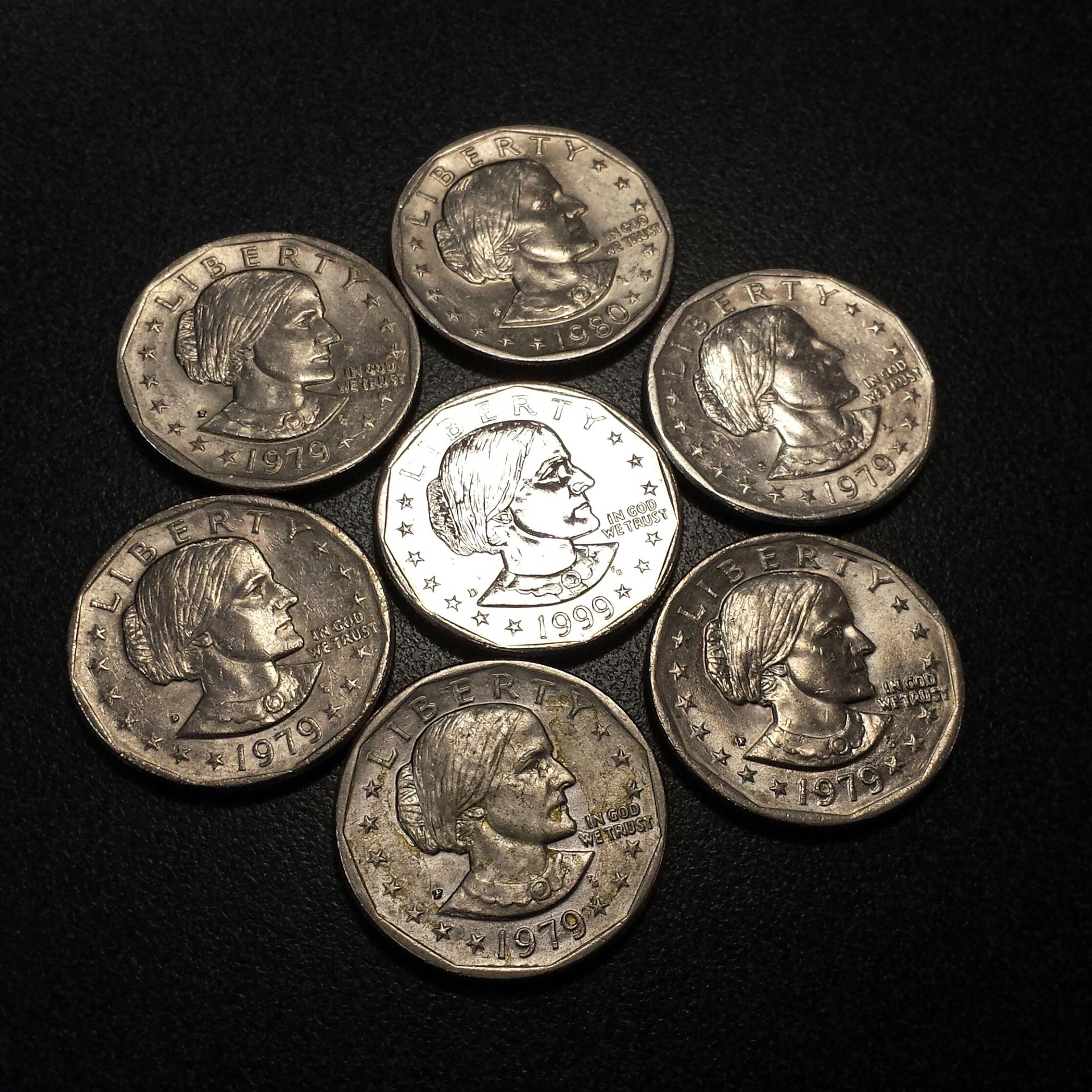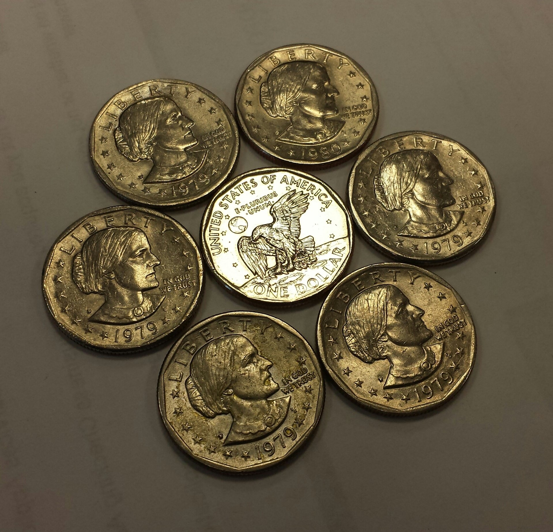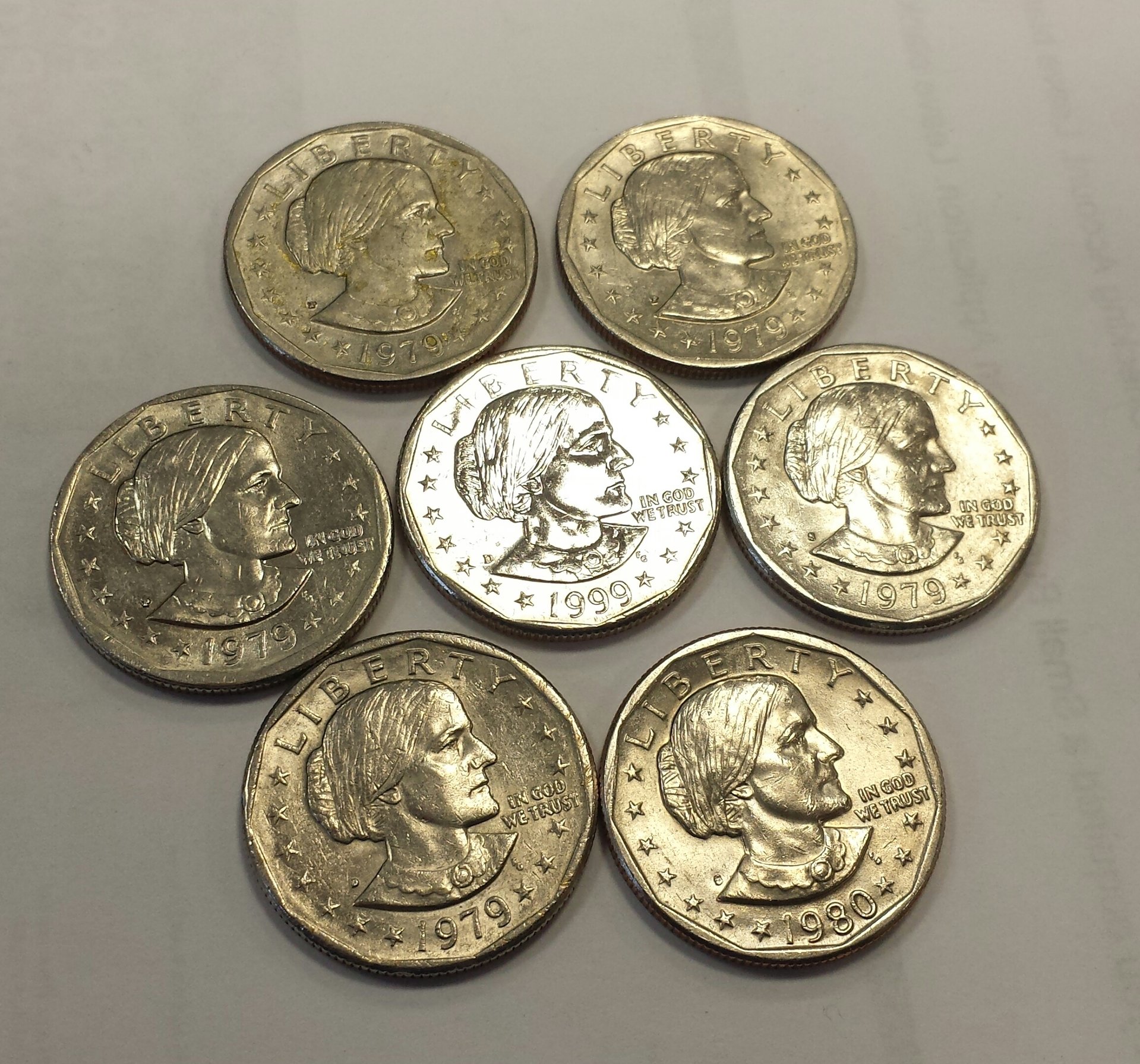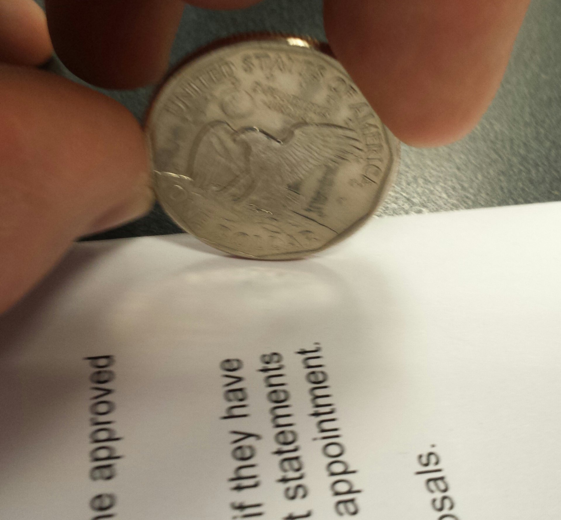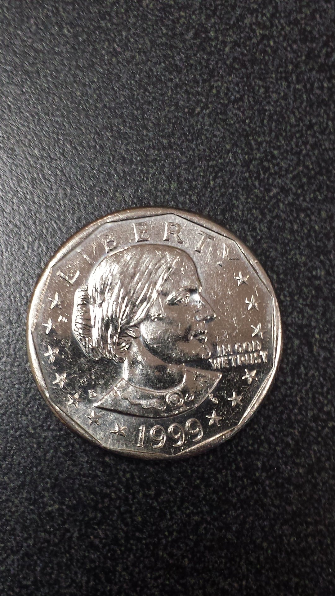 Customer brought in about $150 worth of dollar coins, with 26 being in SBA's. One rally jumped out at me while going through them. It's a 1999 D, but is very much prooflike. It has the reflective finish on the front and back, enough to see clear reflections from 6 inches away. It has been lightly circulated, but it's still a cool piece. It's very hard to take pics of proof and prooflike coins, so I put it with others like it. See if you can tell which one it is....haha. I tried to take a pic of it reflecting words on a paper, but my phone camera kept focusing on the coin itself and not the reflection. You can still kind of see it in the pic. NGC has graded 7 1999 D's as PL. Since mine is circulated, I won't waste the money to submit.