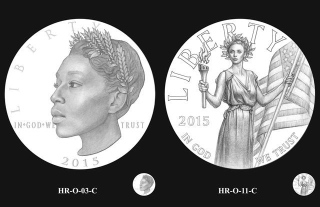 Below are photos presented to the Mint Director for a new Gold & Silver $75.00 Face Coin. How about some chatter on this. My choice would be an Eagle design but this would certainly be a first for African Americans on a gold piece. What say you?