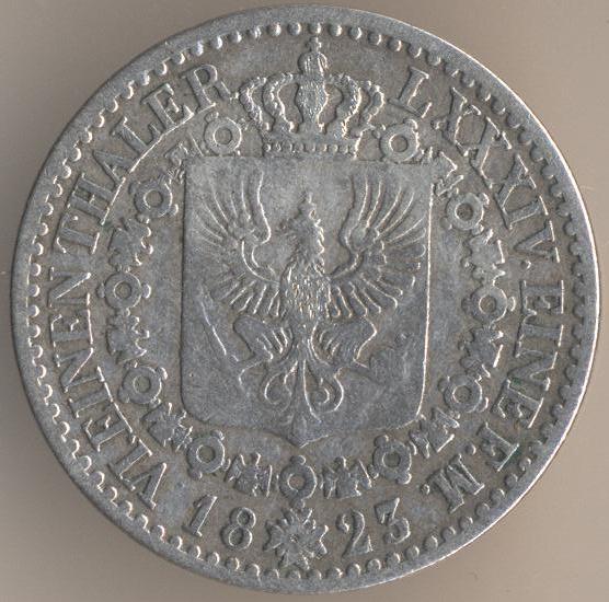 1/6 thaler 1823, silver. 521, weight - 5,345 g. Berlin Mint. Ruler: Friedrich Wilhelm III (1797-1840).