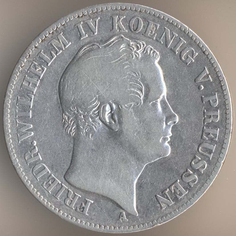 Thaler 1844, silver .750, weight - 22,272 g., mintage - 50000 pcs. Berlin Mint. Friedrich Wilhelm IV (1840-1861).