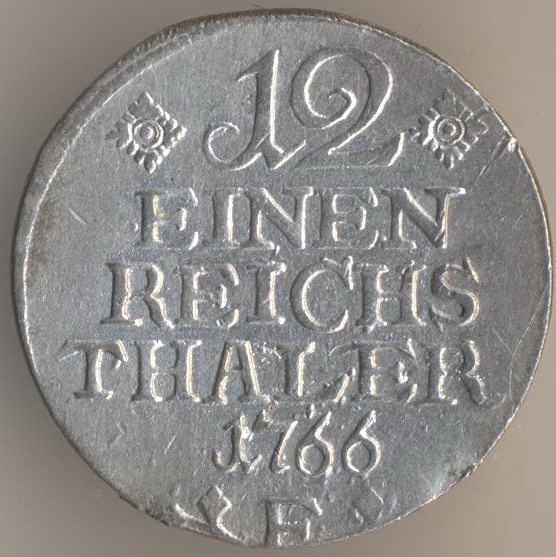 1/12 thaler 1766, silver. Ruler: Friedrich II the Great (1740-1786).