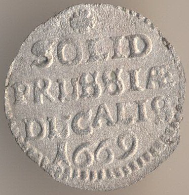 Solid 1669, billon. Ruler: Friedrich Wilhelm von Brandenburg (1640-1688).