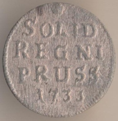 Solid 1733, billon. Ruler: Friedrich Wilhelm I (1713-1740).