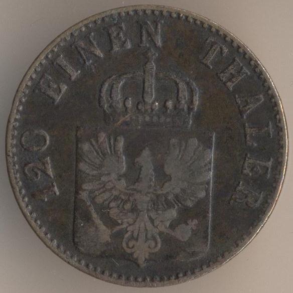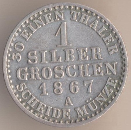1 silbergroschen of the king Wilhelm I. It was equal to 12 pfennig.