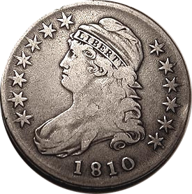 One possibility would be an 1810 Capped Bust Half Dollar; that could be found for perhaps $100 in fine condition.