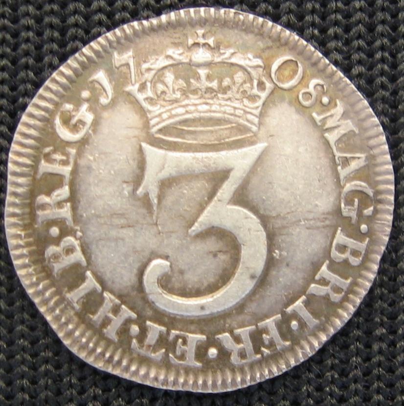 I have a hoard of EF and AU Maundy Threepences dating from Charles II right through to 1868 Victoria, I`m keeping some and selling the others off on eBay. Your thoughts and opinions on this Queen Anne piece. I don`t know if its 1706 or 1708 with a bit missing or a 6 over 8 or an 8 over 6. What you say ?