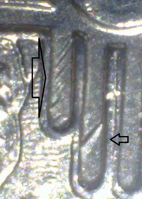 Doug, It took me a while to get oriented on this one, but those areas he's pointing to are raised(I believe) on the surface of the coin. I was seeing them as incuse at first too, but then I realized I was also seeing the design as incuse when it is actually raised.